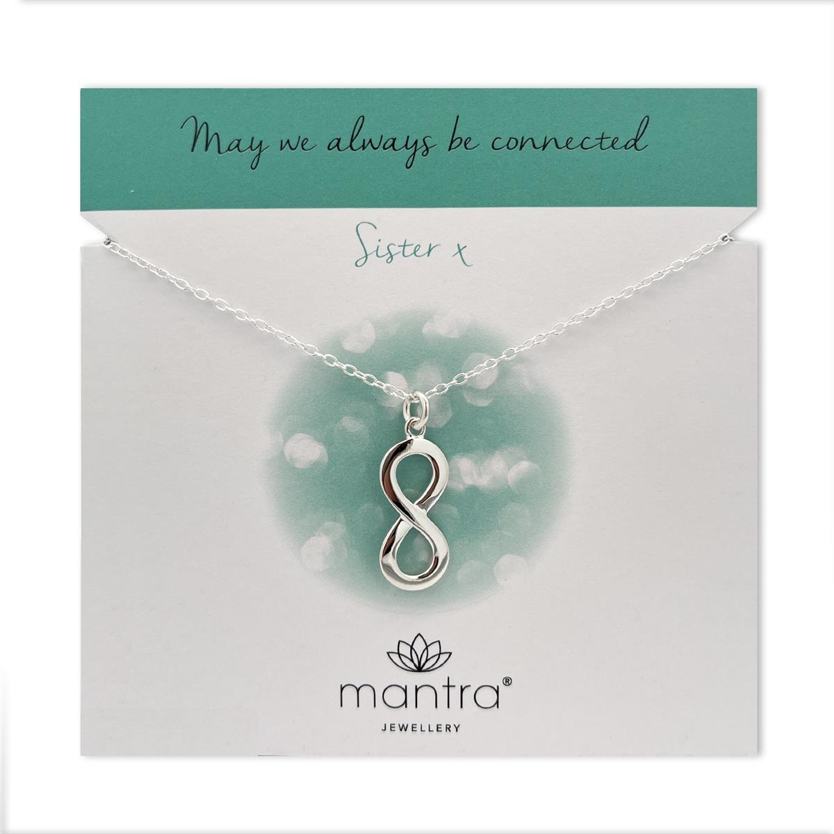 The Infinity Necklace is presented on a fold-out Sister card, with