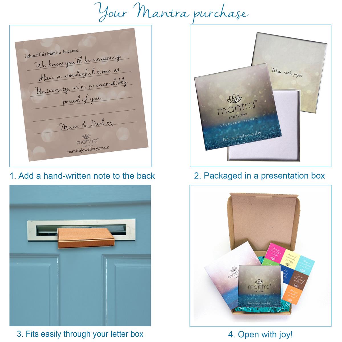 received as a gift. Wear your Mantra Jewellery to bring you joy, every day.